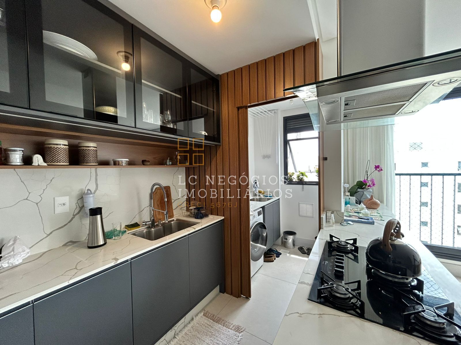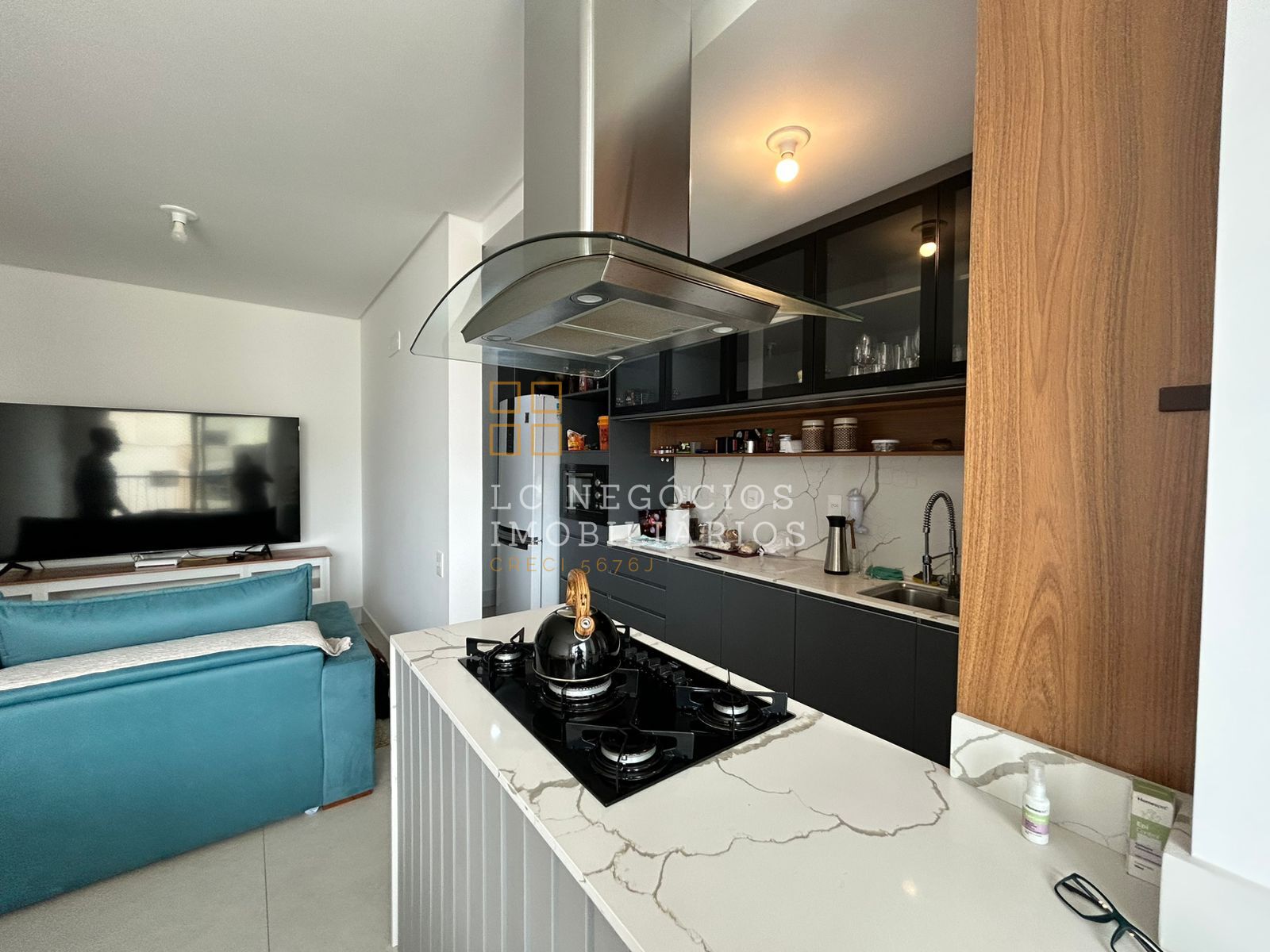 * Sala de estar e jantar integradas à cozinha