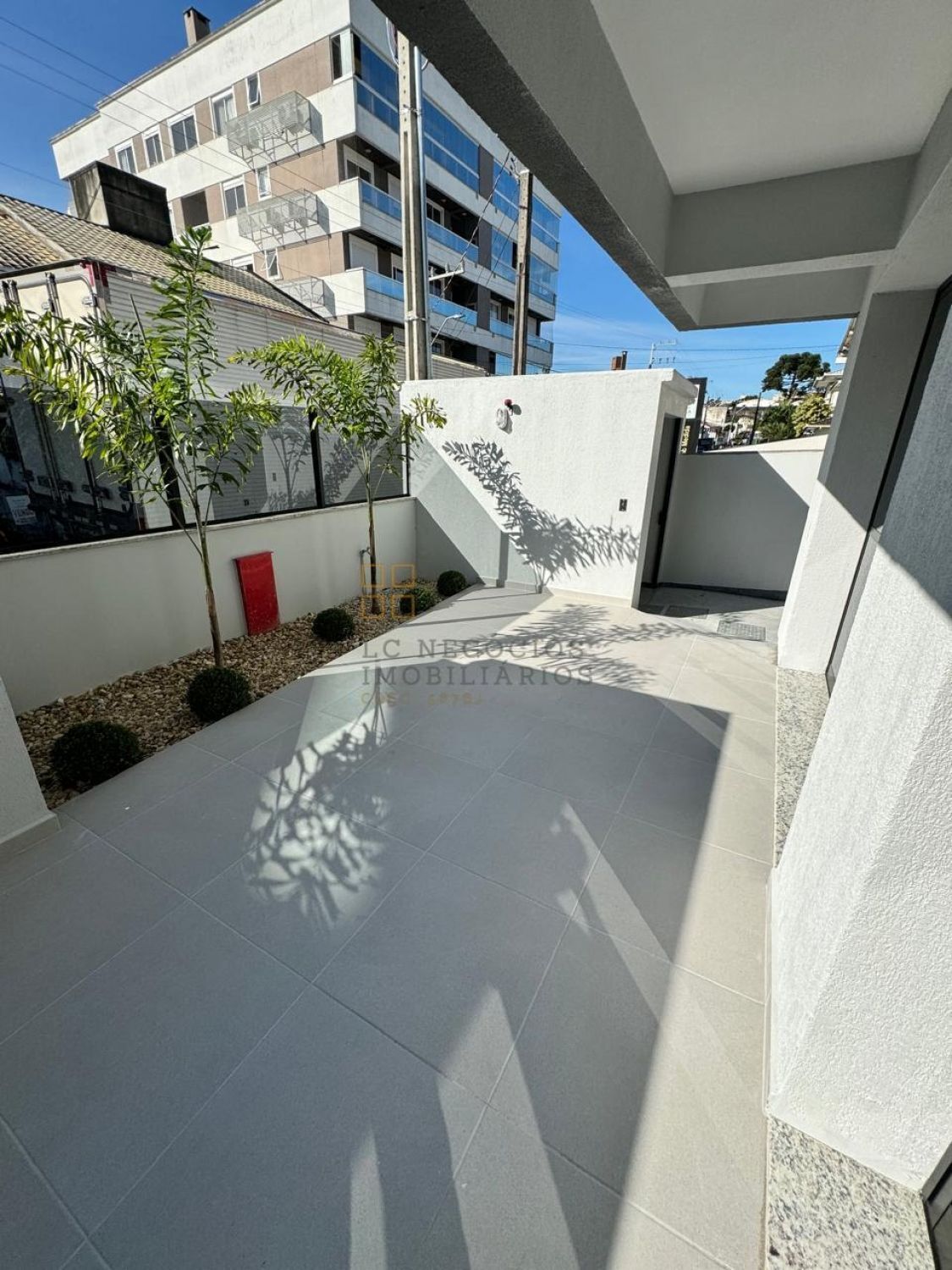- Garagem com piso industrial polido e jardim planejado