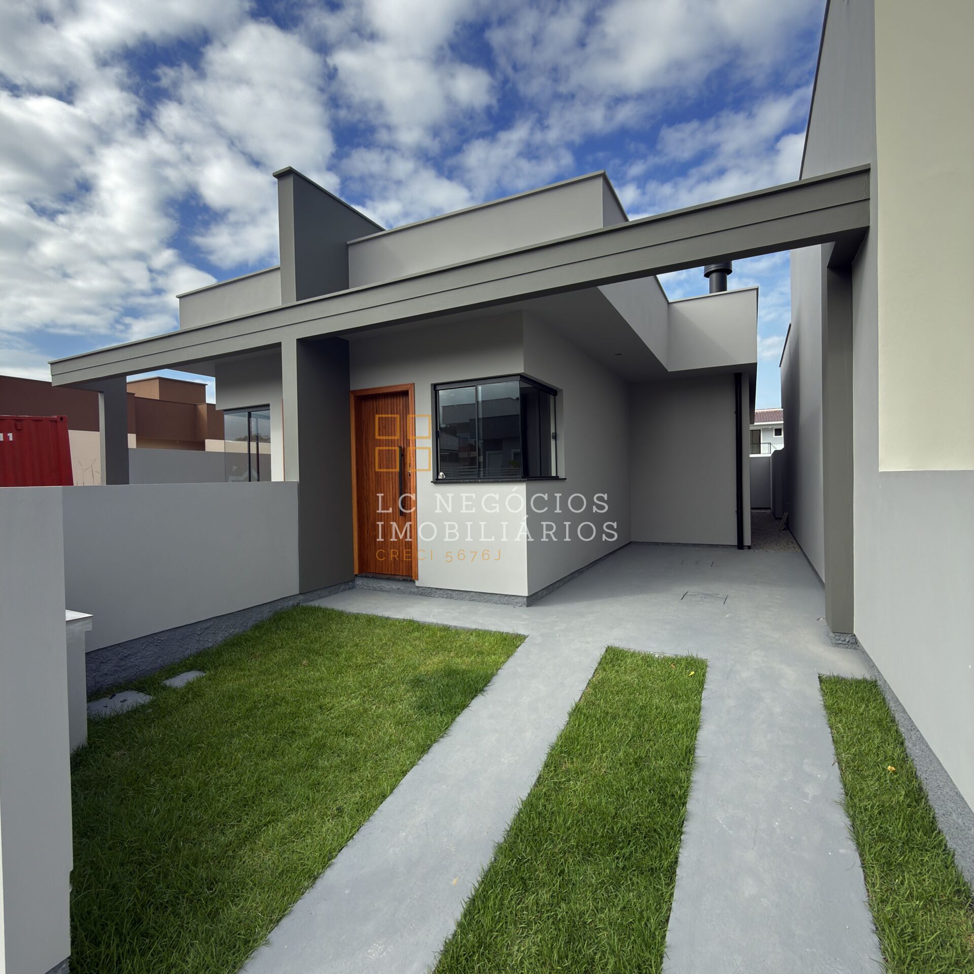 Casa moderna, com fachada imponente, localizada no Loteamento Lisboa 3, no bairro Forquilhas, em São José. Em uma região estratégica, próxima à escola municipal e ao lado do calçadão, com infraestrutura completa e valorização constante.