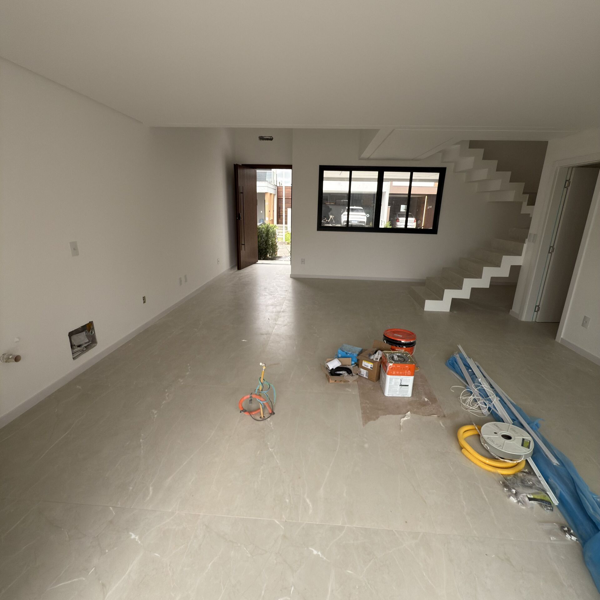 Infraestrutura para ar condicionado e água quente, persianas integradas motorizadas nos quartos, piso vinílico no andar superior e massa corrida em todo o imóvel.