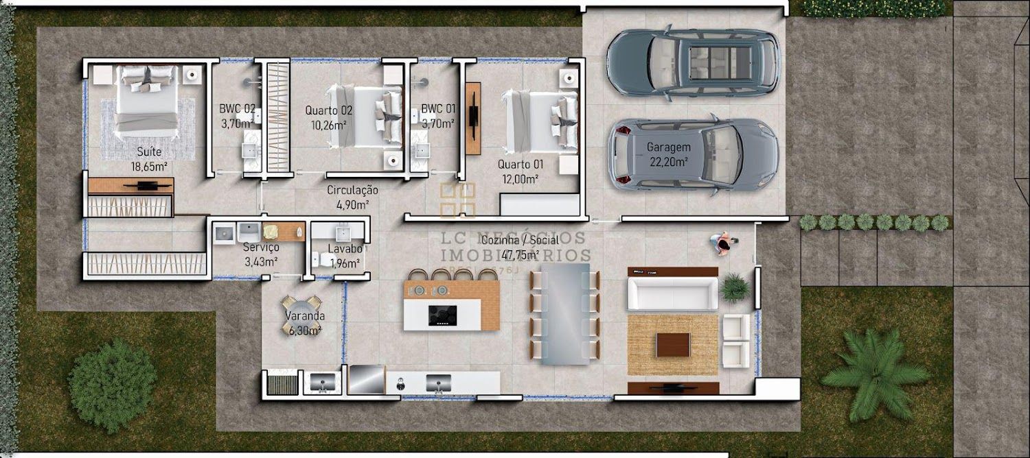 3 Dormitórios, sendo 1 suíteGaragens
